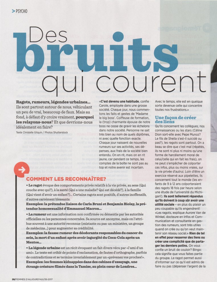 Femmes d’aujourd’hui s’interroge sur les rumeurs! 11 lundi Sep 2017 Taille d'origine : 2530 × 3287 ≈ Commentaires fermés sur ArticleFemmesdaujourdhui-septembre2017-1